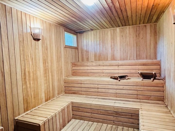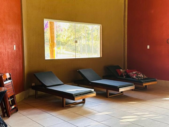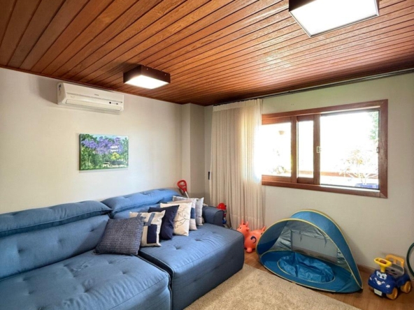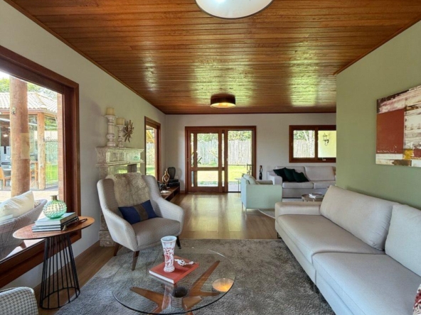 • 4 Suítes Master: Todas climatizadas, com pé-direito alto e acabamento em pinho.