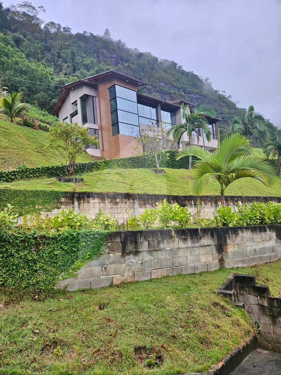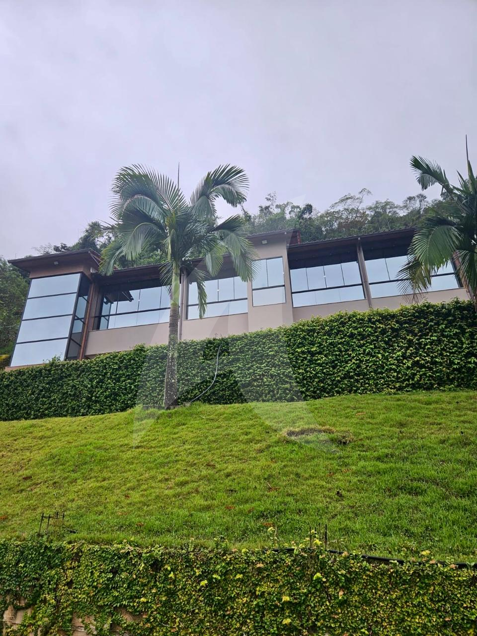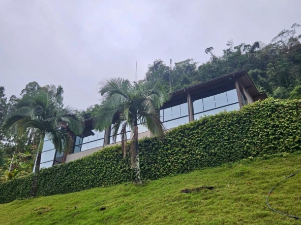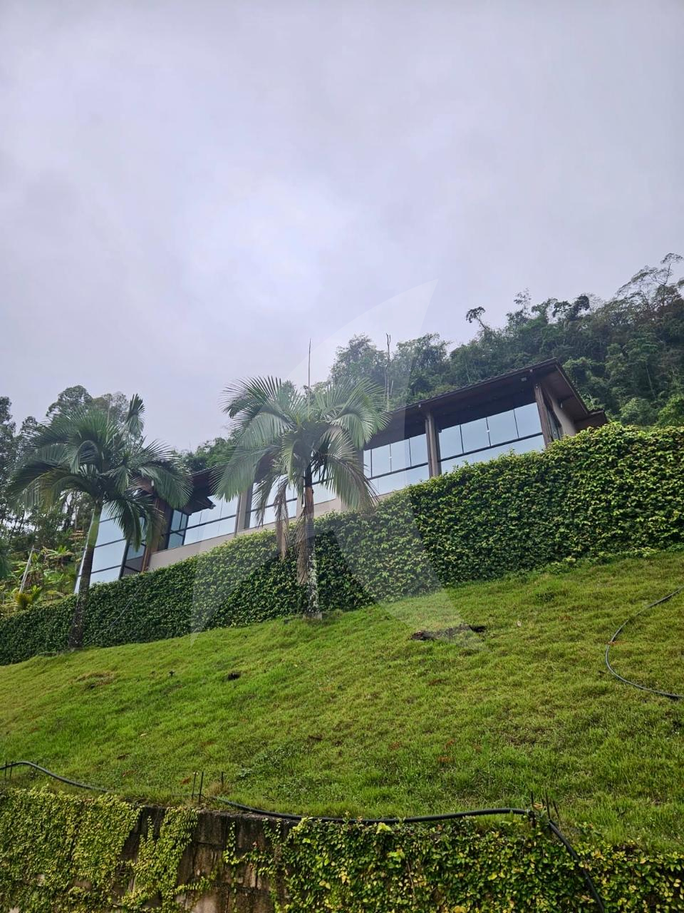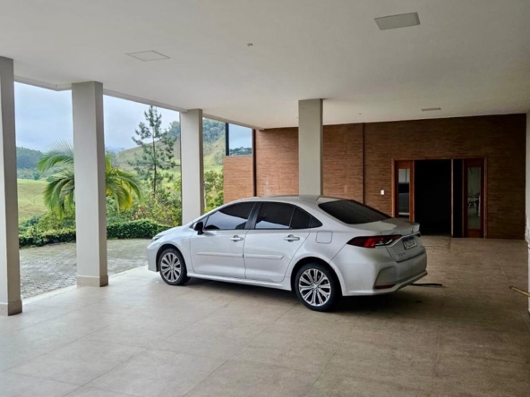 Terreno de 33.000 m², casa 400 m², 3 suítes com vista, lareira, madeiras nobres (Garapa, Angelim Pedra, Parajú), cozinha Kalahari, banhos Taj Mahal, vidros especiais com 70% de proteção solar e UV e fosso panorâmico para elevador.