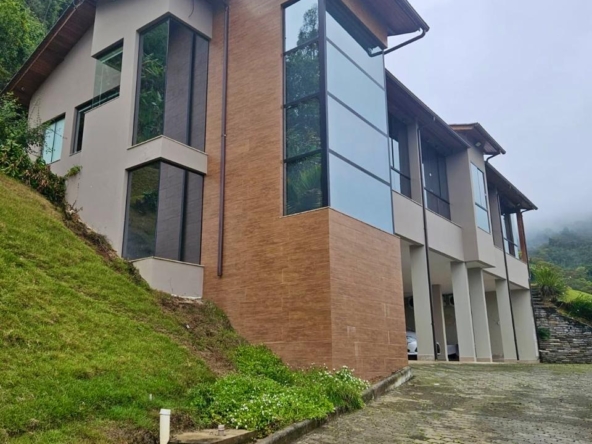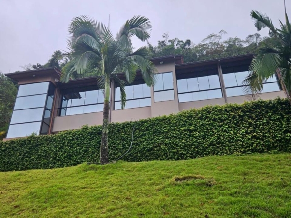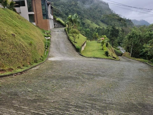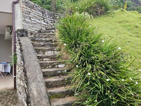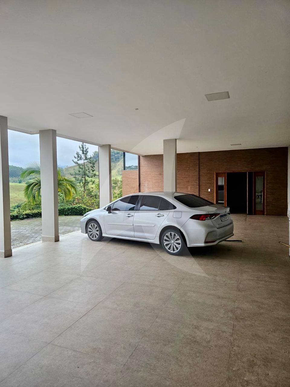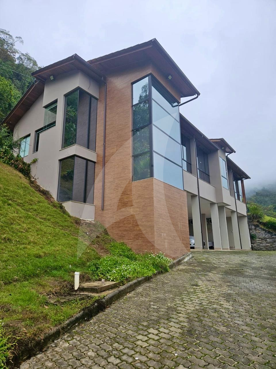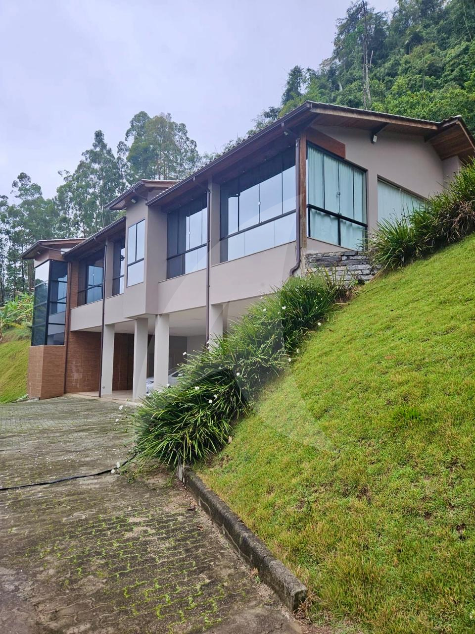 Terreno de 33.000 m², casa 400 m², 3 suítes com vista, lareira, madeiras nobres (Garapa, Angelim Pedra, Parajú), cozinha Kalahari, banhos Taj Mahal, vidros especiais com 70% de proteção solar e UV e fosso panorâmico para elevador.