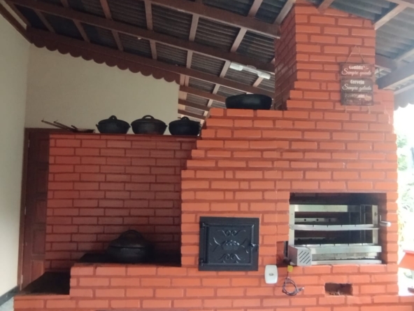 área gourmet com churrasqueira, forno e fogão a lenha, sala de jogos, lago e